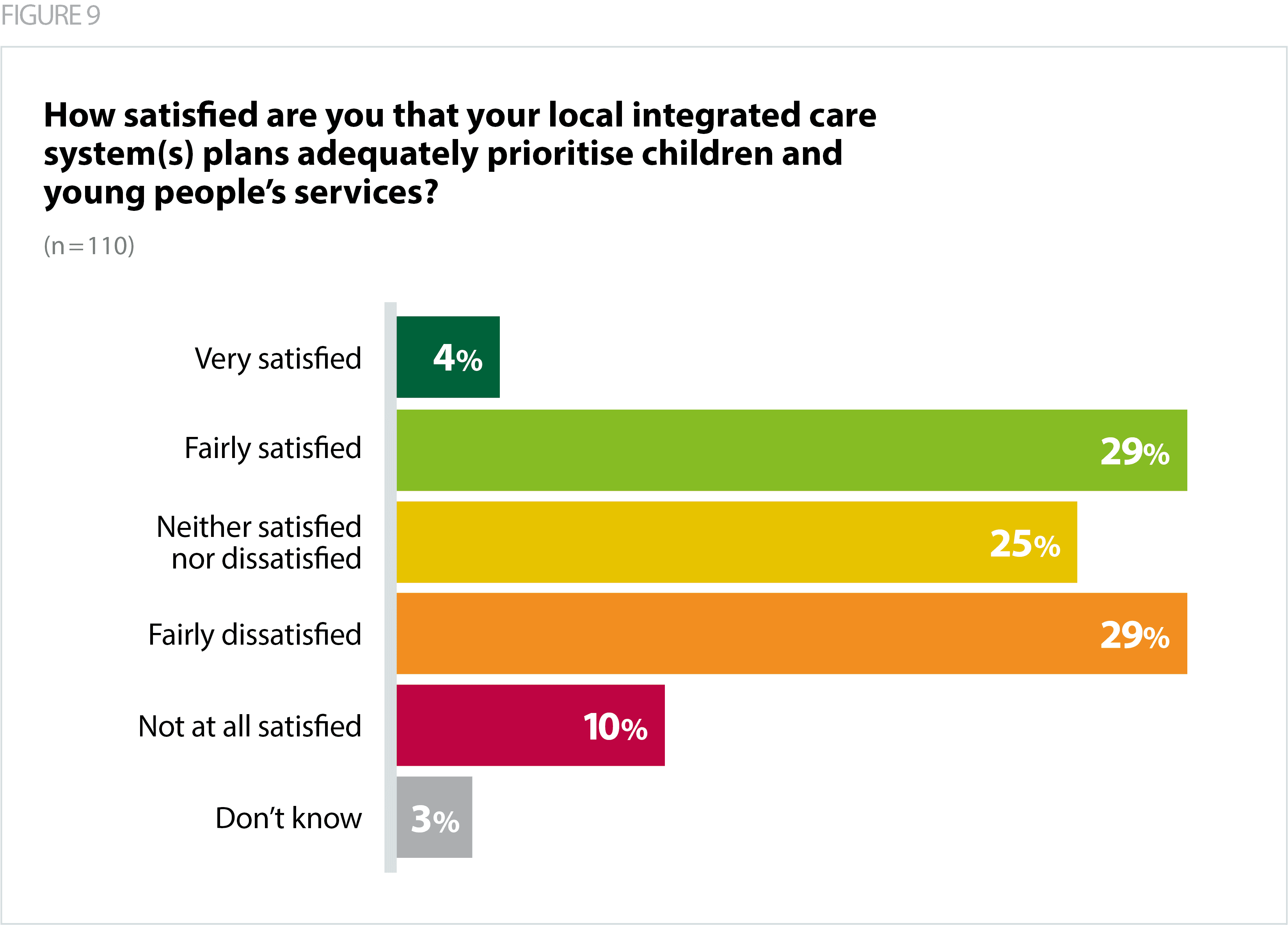 However, only a third of respondents (33%) said they were satisfied that their local ICS plans adequately prioritised children and young people’s services, and 39% of respondents felt dissatisfied with their ICSs’ plans, with levels of dissatisfaction higher among ambulance and community trusts. Again, this suggests that there is further work to do to ensure that trusts from all sectors, are brought into system-level work to tackle some of the challenges being felt across the system.