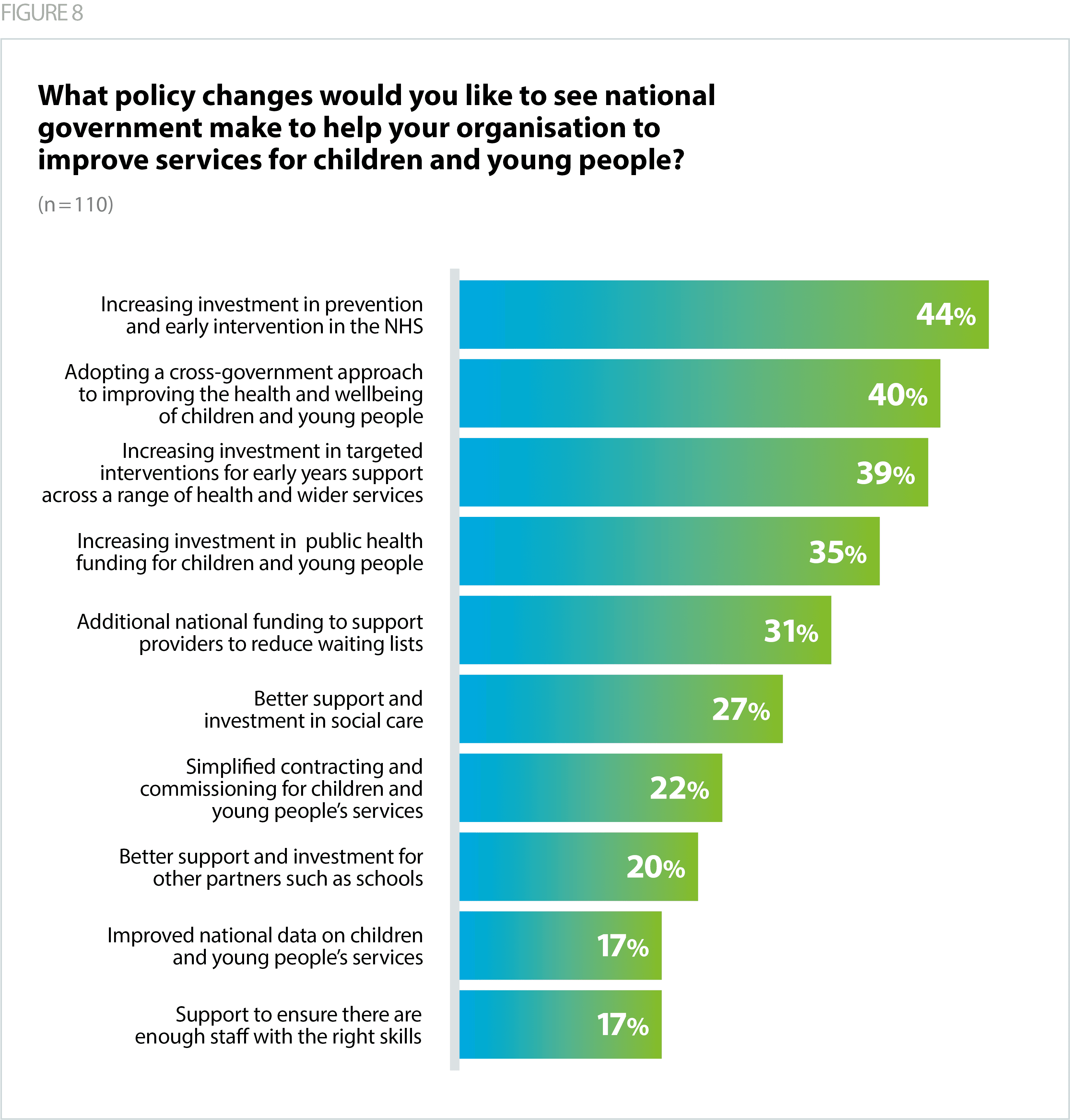 When asked what policy changes they would like to see national government make to help their organisation to improve services for children and young people, the most popular responses were: