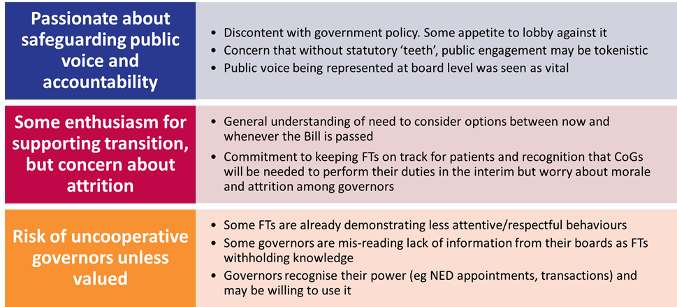 - Potential to work with councils on what might replace them – how will the FT embed public accountability without the council/membership structure?