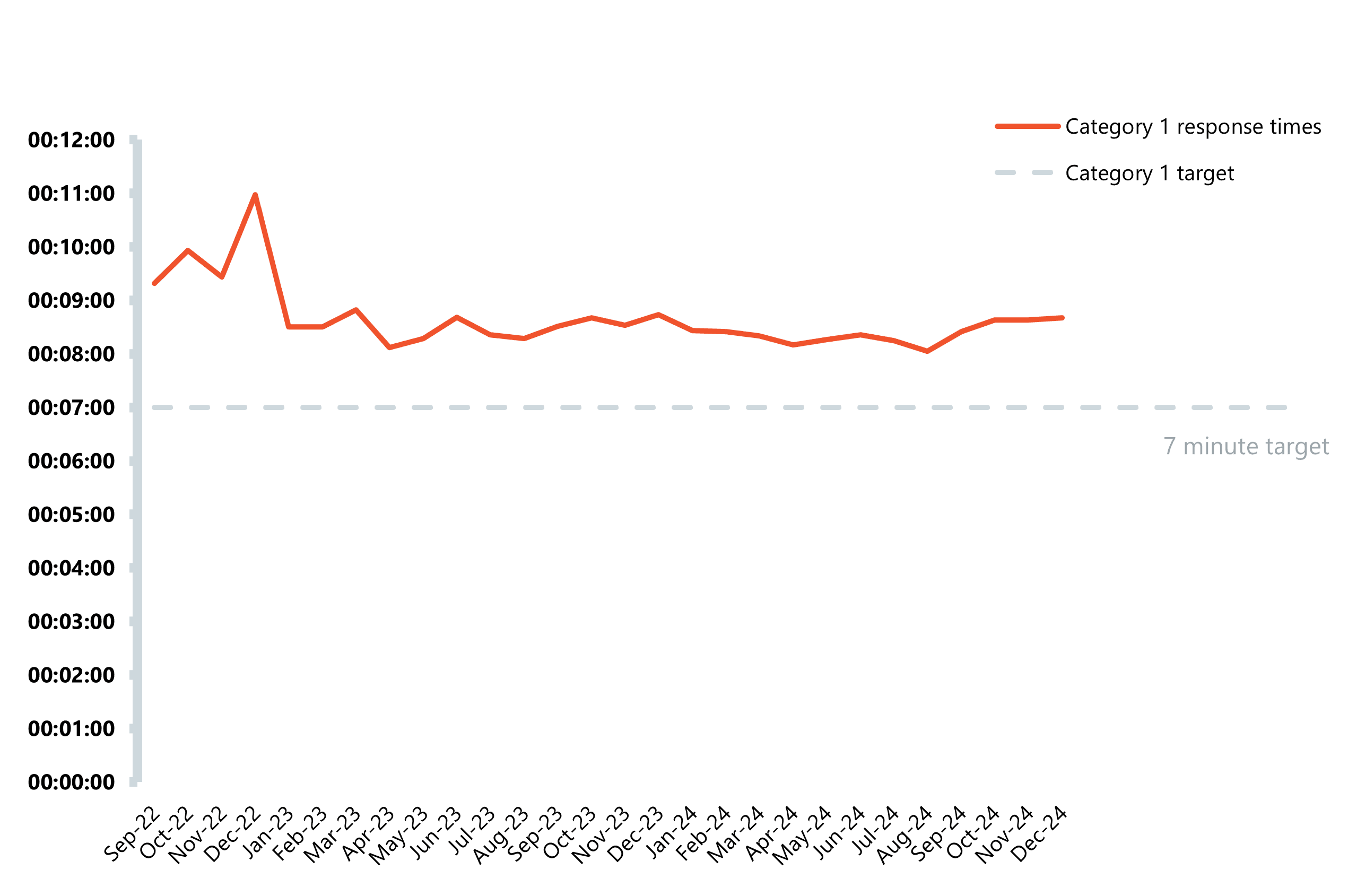 The national ambulance response time targets are seven minutes for category 1 incidents and 18 minutes for category 2 incidents. As part of the plan to recover urgent and emergency care, NHS England adjusted the category 2 target to 30 minutes.