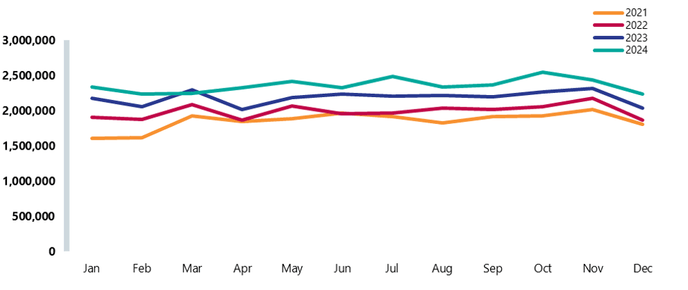 In 2024, there was record high activity across consultant led treatments and diagnostics. However, in line with the usual trend, activity fell across planned care in December as trusts balance their planned and emergency care capacity.