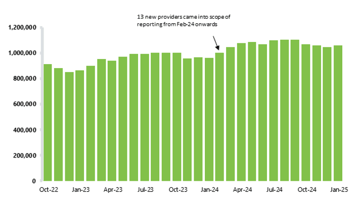 The community services waiting list has now exceeded 1 million people for a year. It is now 5.8% larger than February 2024, when 13 new providers came into the scope of reporting for the community health services monthly sitrep.