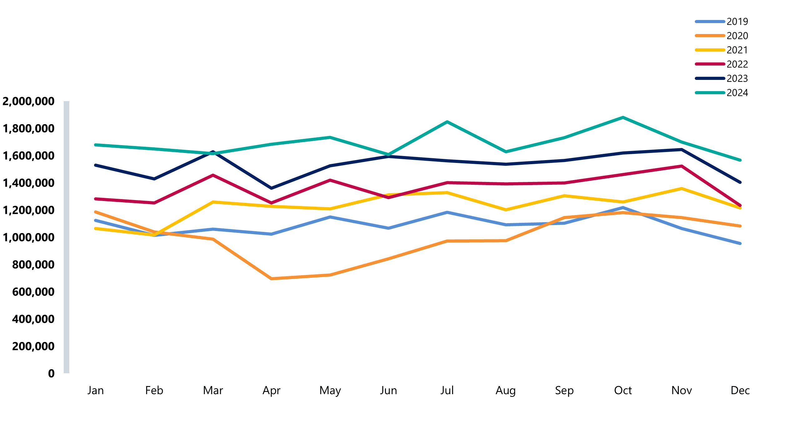 - Referral requests fell for the second month running in December, with 1.57m referrals recorded, decreasing by 7.8% from November. However, referrals remained 11.5% higher than the same period last year.