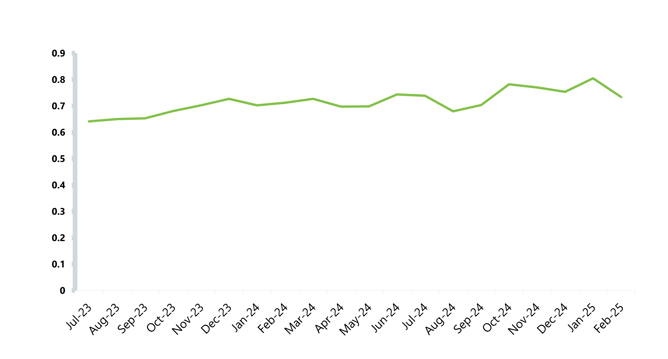 - As of February 2025, virtual ward capacity was 12,720, reflecting a slight increase of 0.8% compared to the previous month.