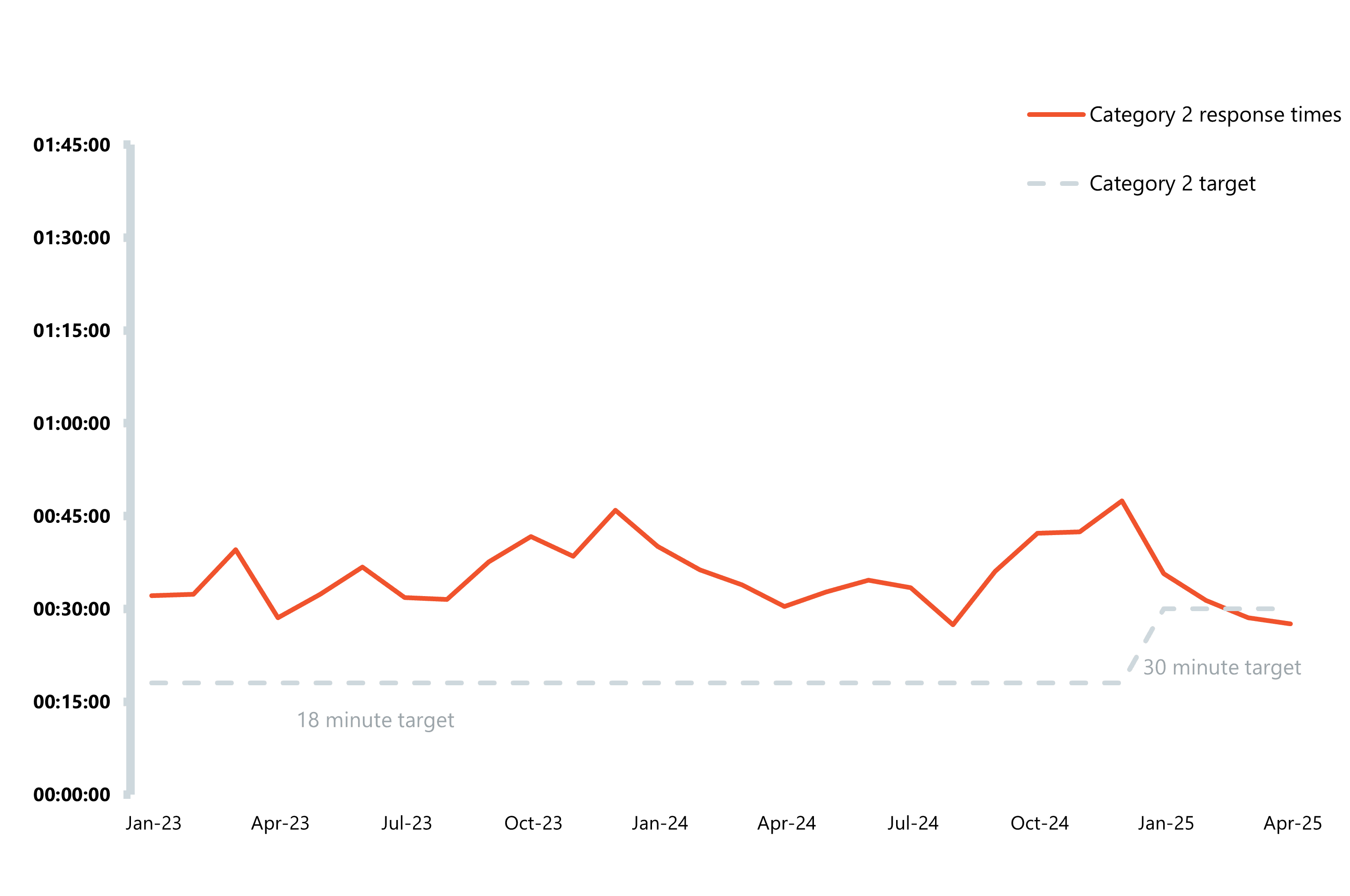 - For category 2 incidents, the average response time was 27 minutes and 34 seconds, marking the fastest time since August 2024 and meeting the 30-minute recovery target for the second month in a row.
