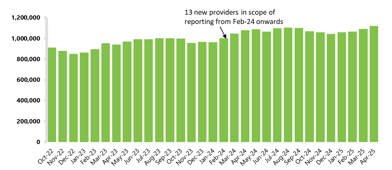 - The community services waiting list rose again in April 2025, reaching 1.12m people – breaking last month’s record figure. The waiting list is 4.4% larger than last year, reflecting sustained pressure across both adult and children’s services.