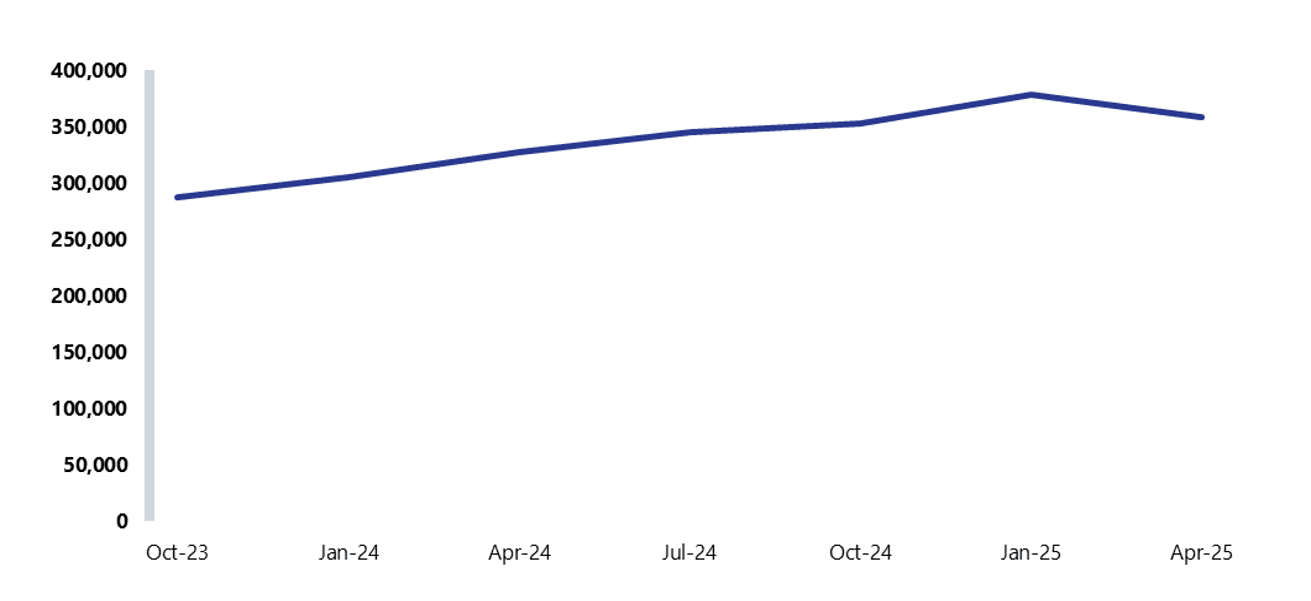 - The number of CYP still waiting for first contact from community mental health services was 359,140 in the three months to April 2025 – a 9.7% increase since last year, highlighting that capacity has yet to fully keep pace with growing demand.