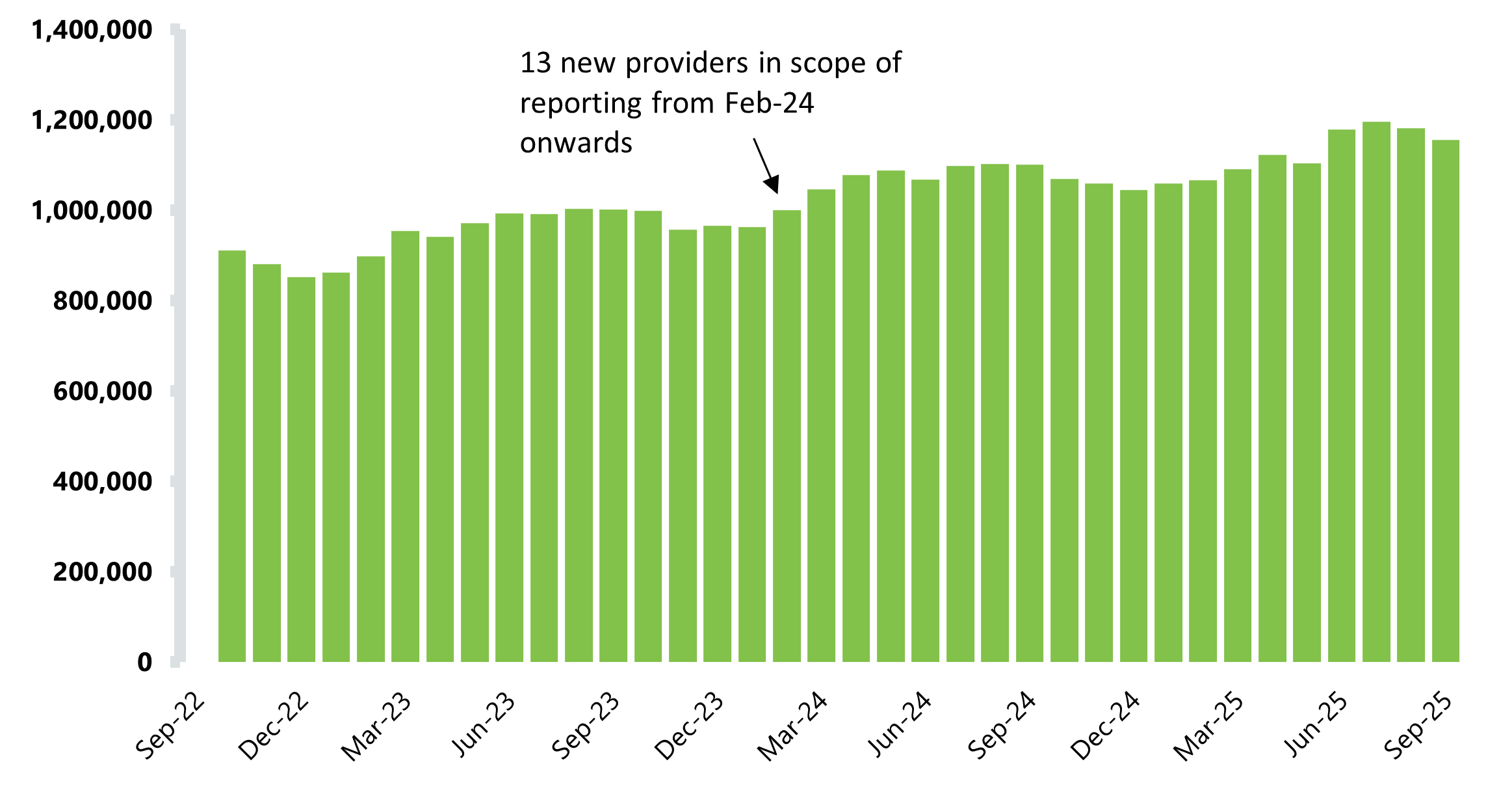 - The total reported community services waiting list in England fell slightly for the second month running (by 26,300) to 1.15 million in September but remains 5% higher than the same time last year.
