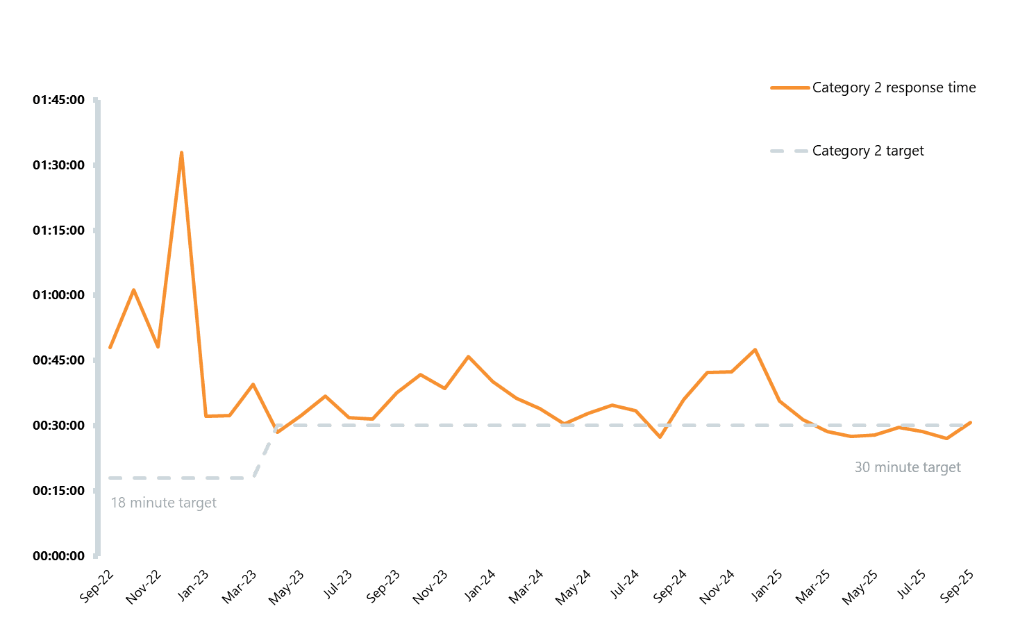 - For category 2 incidents, the average response time was 30 minutes and 46 seconds – also the slowest since February 2025 and missing the 30-minute recovery target.