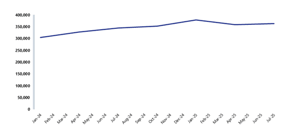 In the 12 months to July 2025, 846,110 CYP accessed mental health services, a 6% increase compared to a year ago. However, this is the first time that the figure has fallen on the month since August 2024.