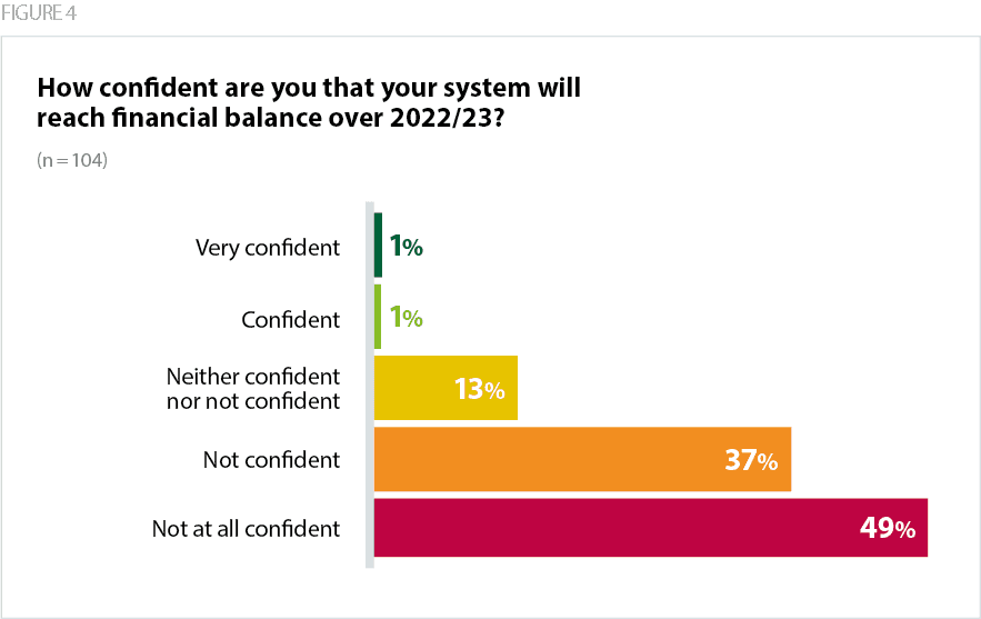 - Of the trusts that responded to our survey, 85% said they are not confident or not at all confident that their system will reach financial balance over 2022/23 and we have been told by some ICBs that they have submitted system plans that will not break even.