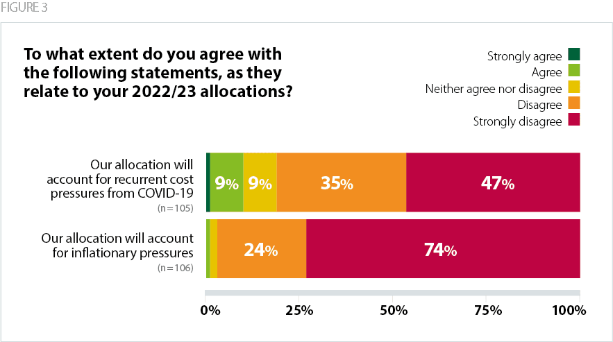 - 82% 'disagree' or 'strongly disagree' that their allocation accounts for recurrent COVID-19 cost pressures.