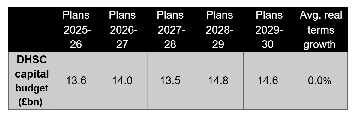 Capital budgets will be held flat in real terms over the course of the spending review period, peaking at £14.8bn in 2028/29. The settlement builds on previous investments to improve the NHS estate and includes: