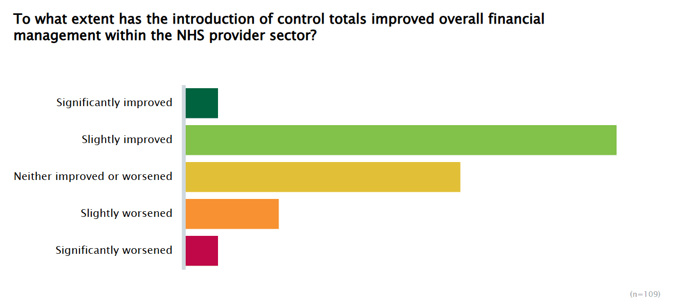 There was regional variation in perspectives, with two thirds of providers (66%) in the north region considering that financial management had improved following the introduction of control totals, compared to around a third (35%) in London.