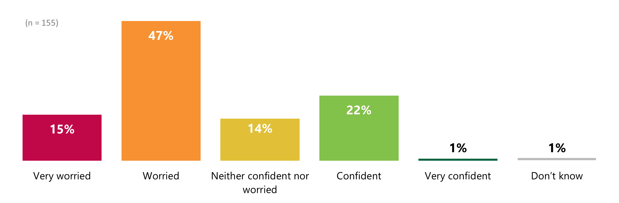 - 63% of trust leaders worried about whether their trust has the capacity to meet demand for services over the next 12 months, down from last year (79%) but slightly higher than before the pandemic (61% in 2019).