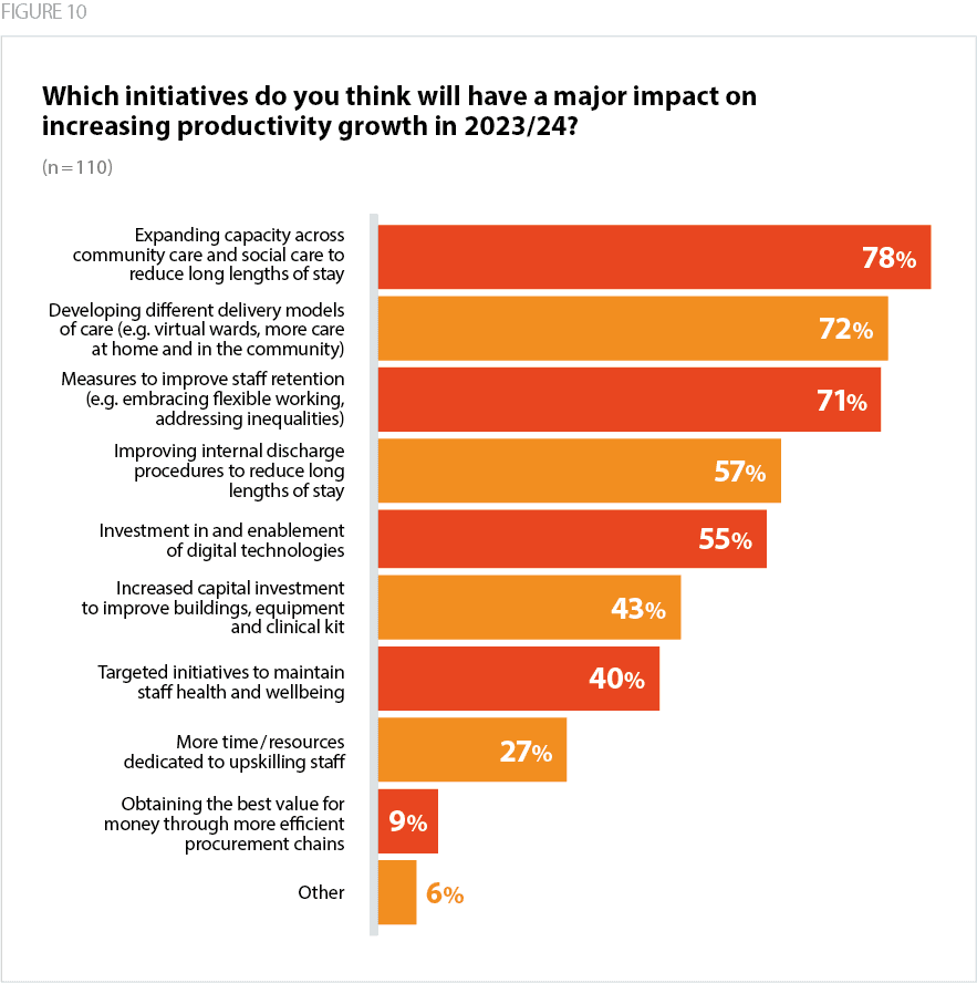 As the graph below shows, trusts have identified a number of initiatives that can help to improve productivity.