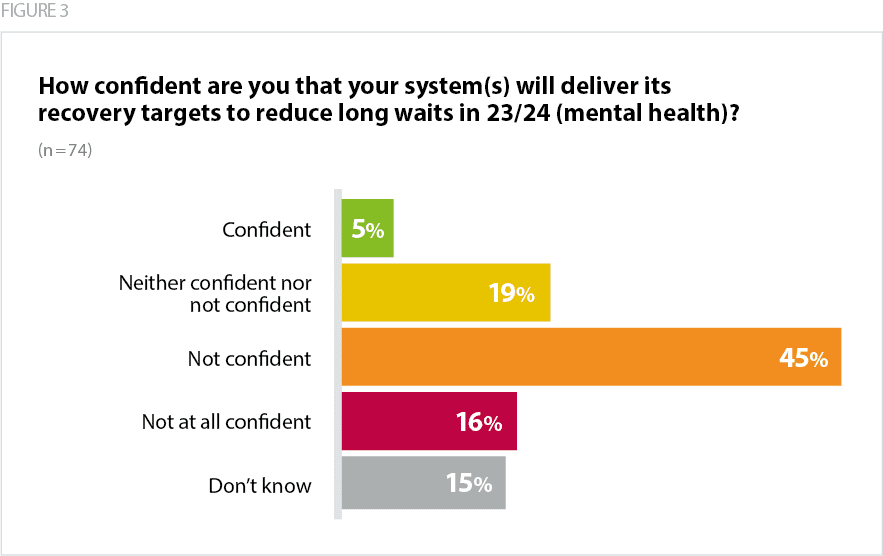 These pressures are reflected in our survey findings, as nearly two thirds (61%) of respondents said they were not confident their system would achieve targets to reduce long waits for mental health care.