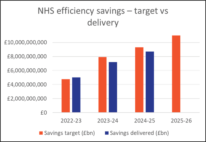 Last year, trusts and systems were tasked with delivering £9.3bn of efficiency savings, equal to 6.1% of their total funding allocation – the highest ever efficiency challenge.